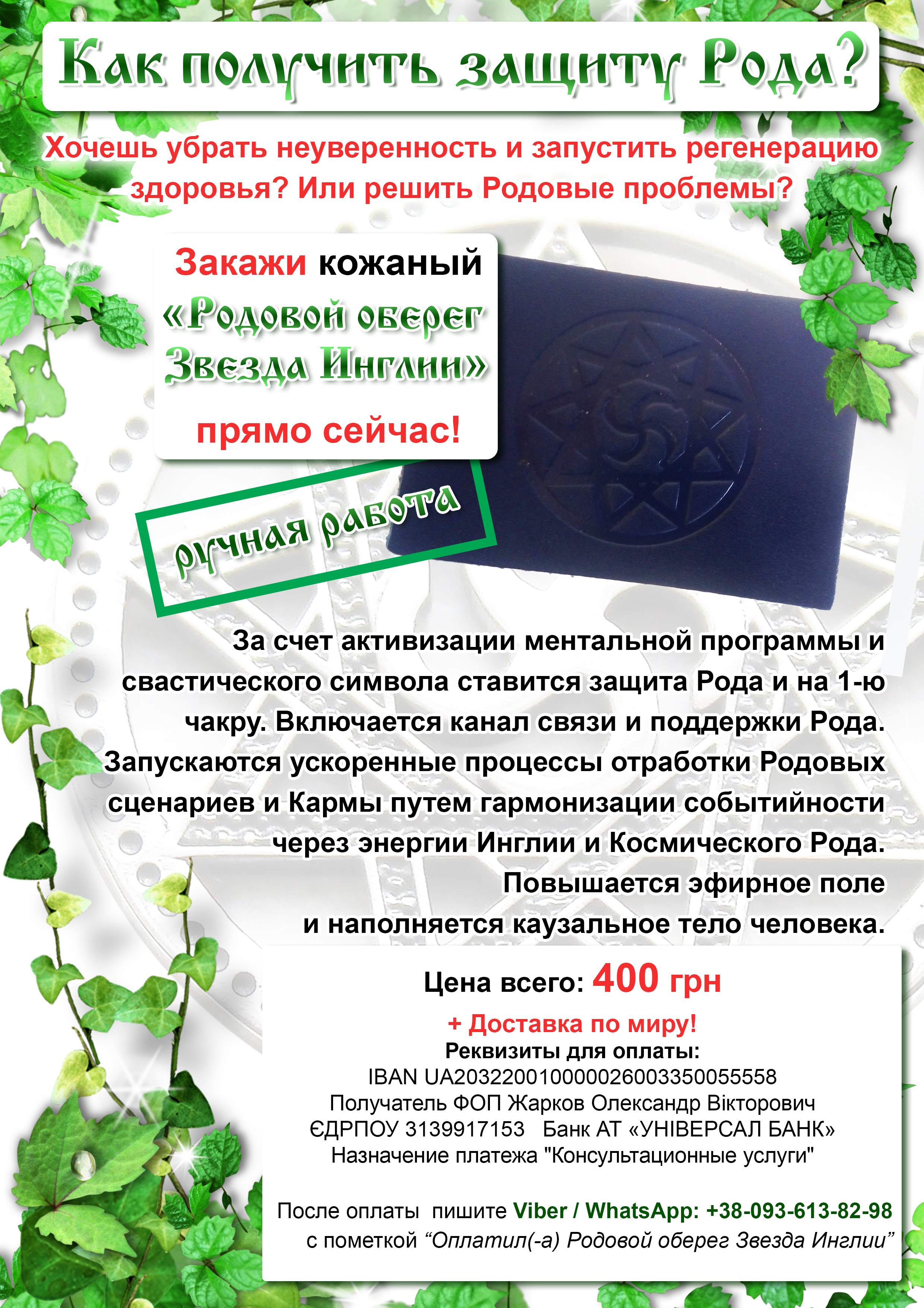 За счет активизации ментальной программы и свастического символа ставится защита Рода и на 1-ю чакру. Включается канал связи и поддержки Рода. Запускаются ускоренные процессы отработки Родовых сценариев и Кармы путем гармонизации событийности через энергии Инглии и Космического Рода. Повышается эфирное поле и наполняется каузальное тело человека.